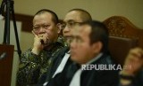 Wakil Ketua Komisi Pemberantasan Korusi (KPK) Laode M Syarif (kiri) menghadiri sidang terdakwa kasus suap dana hibah sekaligus Mantan Ketua Kamar Dagang dan Industri (Kadin) Jawa Timur La Nyalla Mahmud Mattalitti dengan agenda mendengarkan keterangan saksi (FOTO : Republika/ Raisan Al Farisi)