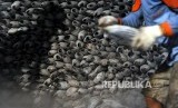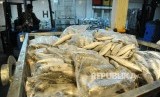 REPUBLIKA.CO.ID, Pekerja melakukan bongkar muat ikan beku cakalang di sebuah gudang penyimpanan berpendingin di area Cold Storage kawasan Muara Baru, Jakarta, Rabu (5\10). Sebanyak 61 industri dan UMKM pengolah ikan akan menghentikan pembelian ikan dari nelayan karena aturan larangan transhipment, serta naiknya harga sewa lahan hingga 460 persen dikawasan Muara Baru.