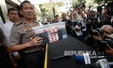 Kabid Humas Polda Metro Jaya Kombes Awi Setiyono menunjukkan tersangka beserta barang bukti kasus videotron bermuatan pornografi di Polda Metro Jaya, Jakarta, Rabu (5/10). (FOTO : Republika/Prayogi)