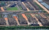 Tumpukan kayu bahan baku bubur kertas (pulp) di PT OKI Pulp & Paper (FOTO : Republika/Maspril Aries)