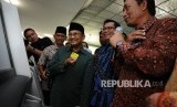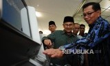 Presiden RI Ke 3 BJ Habibie (kiri), Dirut BRI Asmawi Syam (tengah), Dir Konsumer Bank BRI Sis Apik Wijayanto (kanan) menjelaskan mesin Hybrid saat mengunjungi BRI Digital Banking di Terminal 3 Ultimate bandara Soekarno Hatta, Tangerang, Banten, Kamis (6\10 (FOTO : Republika/ Tahta Aidilla)