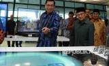 Presiden RI Ke 3 BJ Habibie (kiri), Dirut BRI Asmawi Syam (kanan) menjelaskan layanan Oled saat mengunjungi BRI Digital Banking di Terminal 3 Ultimate bandara Soekarno Hatta, Tangerang, Banten, Kamis (6\10). (FOTO : Republika/ Tahta Aidilla)