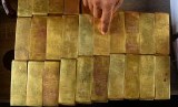 REPUBLIKA.CO.ID, Mapolda Jatim menunjukkan barang bukti terkait kasus Dimas Kanjeng Taat Pribadi yang disita penyidik dari salah satu korbannya bernama Najmiah Muin, warga asal Makassar, Sulawesi Selatan berupa 260 batang emas, mata uang asing dari Vietnam, Tiongkok, dan Korea Selatan yang jumlahnya sekitar Rp200 milyar, keris, patung dan sejumlah barang lainnya yang diduga palsu.