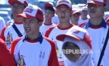 Para peserta atlet yang mengikuti Kirab Api Pekan Paralimpik Nasional (Peparnas) XV 2016 di Jalan Aceh, Kota Bandung, Sabtu (15/10). (FOTO : Mahmud Muhyidin)