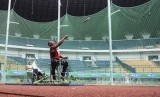 Atlet Paralympic Lempar Cakram asal Sumut Riadi Saputra melakukan lemparan pada final lempar cakram klasifikasi F55 Putra Peparnas XV di Stadion Gelora Bandung Lautan Api, Bandung, Minggu (16/10). Riadi Saputra berhasil meraih medali emas, sementara medali (FOTO : Antara/Muhammad Adimaja)