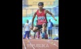 Atlet Paralympic Lompat Jauh asal Jawa Barat Abdul Halim melakukan percobaan lompatan pada final lompat jauh klasifikasi F11 di Stadion Gelora Bandung Lautan Api, Bandung, Minggu (16/10). Abdul halim berhasil meraih medali emas, sementara medali perak dira (FOTO : Antara/Muhammad Adimaja)