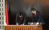 REPUBLIKA.CO.ID, JAKARTA, Menteri Koordinator bidang Kemaritiman Luhut Binsar Pandjaitan yang sebelumnya menjabat Pelaksana tugas (Plt) Menteri Energi dan Sumber Daya Mineral (ESDM) menyerahkan jabatan Menteri ESDM kepada Ignasius Jonan. Luhut menjabat sebagai Plt Menteri ESDM menggantikan Arcandra Tahar yang dicopot dari Menteri ESDM lantaran persoalan kewarganegaraan ganda pada 15 Agustus 2016.