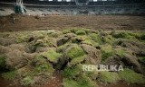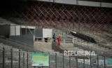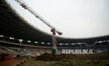 Pekerja menyelesaikan renovasi Stadion Utama Gelora Bung Karno (GBK), Jakarta, Selasa (18/10). (FOTO : Republika/Prayogi)