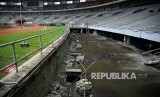 Pekerja mengoprasikan alat berat untuk menyelesaikan renovasi Stadion Utama Gelora Bung Karno (GBK), Jakarta, Selasa (18/10). (FOTO : Republika/Prayogi)