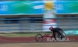 Atlet balap kursi roda klasifikasi T54 putra dari Provinsi Jawa Barat Somantri menjalani final balap kursi roda 10.000 meter dalam perhelatan Pekan Paralimpik Nasional (Peparnas) XV. (FOTO : Republika/Raisan Al Farisi)