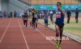 Atlet lari klasifikasi T45-46 putra dari Provinsi Maluku Erens Sabandar mencapai garis finish saat menjalani final balap 1.500 meter dalam perhelatan Pekan Paralimpik Nasional (Peparnas) XV (FOTO : Republika/Raisan Al Farisi)