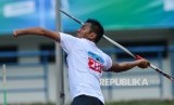 Atlet lempar lembing klasifikasi F47 putra yang berasal dari Jawa Tengah Priyano menjalani pertandingan dalam perhelatan Pekan Paralimpik Nasional (Peparnas) XV (FOTO : Republika/Raisan Al Farisi)