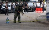 Personel tim penjinak bahan peledak Mabes Polri mengamankan benda yang mencurigakan di lokasi penyerangan brutal dengan senjata tajam terhadap anggota kepolisian di Cikokol, Tangerang, Banten, Kamis (20/10). (FOTO : Antara/Muhammad Iqbal)
