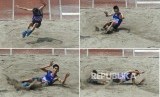 Foto kombo atlet paralimpik DKI Jakarta Fajar Budi Pratama saat melakukan lompatan saat bertanding di cabang atletik lompat jangkit F+54 putra Peparnas XV 2016 di Stadion Gelora Bandung Lautan Api, Bandung, Kamis (20/10). (FOTO : Republika/Edwin Dwi Putranto)