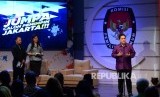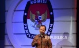 Ketua KPUD DKI Jakarta Sumarno memberikan sambutan saat peluncuran Jumpa Calon Pemimpin Jakarta di Studio Jak TV, Jakarta, Jumat (21/10) malam. (FOTO : Republika/Wihdan Hidayat)