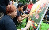 Melukis bunga dalam Collaboration Music And Oratorium Colossal pada Asian Flower Fest Grand Hotel Lembang, Kabupaten Bandung Barat, Selasa (24/10). (Republika/Edi Yusuf) (FOTO : Republika/Edi Yusuf)
