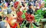 Para pengunjung dan peserta berebut bunga pada Asian Flower Fest Grand Hotel Lembang, Kabupaten Bandung Barat, Selasa (24/10). (Republika/Edi Yusuf) (FOTO : Republika/Edi Yusuf)