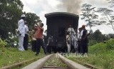 Para Penumpang Lokomotif Uap Kuno dengan nuansa tempoe doeloe. (Republika/Bowo Pribadi) (FOTO : Republika/Bowo Pribadi)