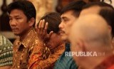 Keluarga para WNI korban penyanderaan perompak Somalia saat menghadiri acara serah terima sandera Somalia di Kementerian Luar Negri, Jakarta, Senin (31/10).(Republika/Rakhmawaty La'lang) (FOTO : Republika/Rakhmawaty La'lang)