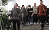 Wakil Presiden RI Jusuf Kalla (kedua kiri) bersama Presiden Inter Milan sekaligus pemilik Mahaka Media Erick Thohir (ketiga kanan) saat melayat Jenazah Mochamad Teddy Thohir di rumah duka, Jakarta, Selasa (1/11). (Republika/Rakhmawaty La'lang) (FOTO : Republika/Rakhmawaty La'lang)