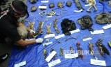 Barang bukti bangkai bermacam satwa langka yang telah diawetkan pada pemusnahan 38 jenis satwa dilindungi yang telah diawetkan di Mapolrestabes Bandung, Jalan Merdeka, Kota Bandung, Selasa (1/11).(Republika/Edi Yusuf) (FOTO : Republika/Edi Yusuf)