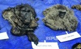Barang bukti kulit kera, pada pemusnahan 38 jenis satwa dilindungi yang telah diawetkan di Mapolrestabes Bandung, Jalan Merdeka, Kota Bandung, Selasa (1/11).(Republika/Edi Yusuf) (FOTO : Republika/Edi Yusuf)