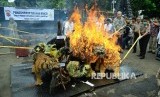 REPUBLIKA.CO.ID, BANDUNG -- Sebanyak 38 jenis satwa yang dilindungi yang telah diawetkan, dimusnahkan di Mapolrestabes Bandung, Jalan Merdeka, Kota Bandung, Selasa (1/11).