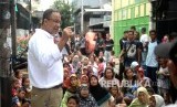 REPUBLIKA.CO.ID, JAKARTA -- Calon Gubernur nomer urut tiga Anies Baswedan berbincang dengan warga Taman Sari, Jakarta Barat, Kamis (3/11), saat blusukan di lokasi tersebut.