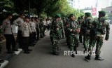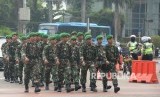 REPUBLIKA.CO.ID,JAKARTA -- Personil TNI -Polri disiagakan untuk mengamankan kawasan Bundaran Hotel Indonesia, Jakarta, Jumat (4/11).