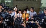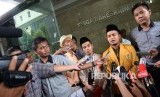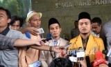 Ketua PP Ikatan Pelajar Muhammadiyah Khairul Sakti Lubis (kiri), dan Sekretaris PP Pemuda Muhammadiyah Pedri Kasman (tengah) memberian keterangan kepada wartawan saat pemeriksaan sebagai pelapor terkait penistaan agama di Bareskrim Polri, Jakarta, Selasa (FOTO : Republika/Yasin Habibi)