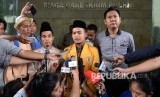 REPUBLIKA.CO.ID, JAKARTA -- Ketua PP Ikatan Pelajar Muhammadiyah Khairul Sakti Lubis dan Sekretaris PP Pemuda Muhammadiyah Pedri Kasman (kedua kiri) memberikan keterangan pers saat pemeriksaan sebagai pelapor terkait penistaan agama di Bareskrim Polri, Jakarta, Selasa (8/11).