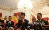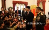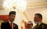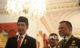 REPUBLIKA.CO.ID, JAKARTA -- Presiden Joko Widodo bersama Panglima TNI Gatot Nurmantyo menjawab pertanyaan wartawan terkait isu penggantian Panglima TNI di Istana Negara, Jakarta, Rabu (11/9).