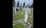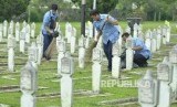 REPUBLIKA.CO.ID, BANDUNG -- Sejumlah pengemudi taxi Blue Bird Bandung membersihkan rumput dalam rangka Memperingati Hari Pahlawan di Taman Makam Pahlawan (TMP) Cikutra, Kota bandung, Rabu (9/11).