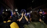 Polisi menghadang massa saat aksi unjuk rasa menentang kemenangan Presiden AS terpilih Donald Trump di Oakland, Kalifornia. (FOTO : REUTERS/Stephen Lam)