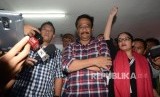 Calon Wakil Gubernur DKI Jakarta nomor urut 2 Djarot Syaiful Hidayat memberikan keterangan kepada awak media seusai menghadiri pertemuan bersama parpol pengusung dan tim sukses di Kantor Pemenangan Ahok-Djarot, Jakarta, Rabu (16/11). (FOTO : Republika/Raisan Al Farisi)