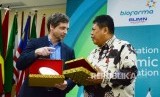 Dirut PT Bio Farma Iskandar berbincang dengan Martin Eisenhawer dari WHO pada penutupan Workshop Manajemen Industri Vaksin di Bio Farma, Kota Bandung, Kamis (17/11). (FOTO : Republika/Edi Yusuf)