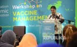 Dirut PT Bio Farma Iskandar berpidato saat penutupan Workshop Manejemen Produksi Vaksin, di Bio Farma, Kota Bandung, Kamis (17/11). (FOTO : Republika/Edi Yusuf)