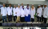 Para peserta dengan pakaian lab pada penutupan Workshop Manajemen Industri Vaksin di Bio Farma, Kota Bandung, Kamis (17/11). (FOTO : Republika/Edi Yusuf)