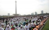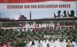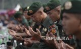REPUBLIKA.CO.ID, JAKARTA -- Pasukan GabunganTNI-Polri mengikuti acara istighosah dan doa keselamatan bangsa bersama masyarakat dan anak yatim di kawasan silang Monas, Jakarta, Jumat (18/11).