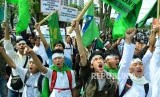 REPUBLIKA.CO.ID,BANDUNG -- Seribu lebih peserta dari berbagai organisasi massa turun ke jalan menggelar aksi unjuk rasa damai "Apel Akbar Muslim Jawa Barat" di depan Gedung Sate, Kota Bandung, Jumat (18/11).