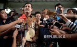 Ketua Pengusaha Muda Indonesia Sam Aliano memberikan keterangan saat tiba di Bareskrim Mabes Polri, Jakarta, Senin (21/11). (FOTO : Republika/Prayogi)