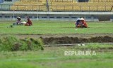 Kondisi lapangan yang masih diperbaiki di Stadion Gelora Lautan Api, Jl Gedebage, Kota Bandung, Senin (28/11). (FOTO : Republika/Mahmud Muhyidin)