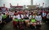 Istri prajurit TNI-Polri dan PNS turut memeriahkan Apel Nasional Nusantara Bersatu di Silang Monas, Jakarta, Rabu (30/11). (FOTO : Republika/Prayogi)