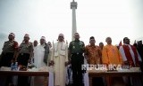 REPUBLIKA.CO.ID, JAKARTA -- Panglima TNI Jenderal Gatot Nurmantyo bersama Kapolri Jenderal Pol Tito Karnavian, Kapolda Metro Jaya, Irjen Pol M Iriawan dan sejumlah tokoh agama mengikuti Apel Nasional Nusantara Bersatu di Silang Monas, Jakarta, Rabu (30/11).