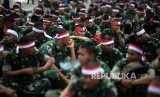Prajurit TNI mengikuti Apel Nasional Nusantara Bersatu di Silang Monas, Jakarta, Rabu (30/11). (FOTO : Republika/Prayogi)