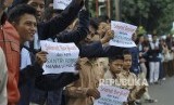 REPUBLIKA.CO.ID,BANDUNG -- Santri Pesantren Persis 110 Manbaul Huda tengah bersiap menyambut rombongan peserta long march dalam aksi Bela Islam 212 Jilid III dari Ciamis yang bejalan kaki di Jalan Raya Soekarno Hatta, Kota Bandung, Kamis (1/12).