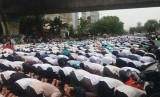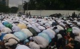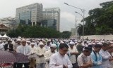 REPUBLIKA.CO.ID, JAKARTA -- Para peserta kegiatan doa bersama 2 Desember 2016 melakukan Shalat Jumat di Jalan Thamrin, Jakarta Pusat, dalam cuaca hujan. Jamaah memadati dua sisi jalan raya dari Jalan Medan Merdeka Barat hingga Jalan Thamrin, tepatnya perempatan Sarinah.