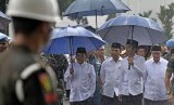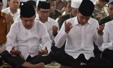 REPUBLIKA.CO.ID, JAKARTA -- Presiden Joko Widodo didampingi Wakil Presiden Jusuf Kalla, Menkopolhukam Wiranto dan Menteri Agama Lukman Hakim Syaifuddin melaksanakan shalat Jumat di Silang Monas, Jakarta, Jumat (2/12). Presiden mengapresiasi ulama dan seluruh peserta Aksi Bela Islam III yang berlangsung dengan tertib dan lancar.