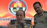 Kadiv Humas Polri Irjen Pol Boy Rafli Amar (kiri) didampingi Karo Penmas Divisi Humas Polri Kombes Pol Rikwanto (kanan) memberikan keterangan pers di Mabes Polri, Jakarta, Sabtu (3/12). (FOTO : Antara/Sigid Kurniawan)