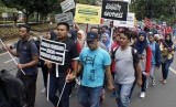 Peserta longmars peringatan hari Penyandang Disabilitas Internasional berjalan di kawasan Gedung Sate Bandung, Jawa Barat, Sabtu (3/12). (FOTO : Antara/Agus Bebeng)